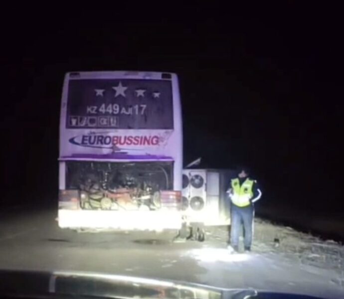 10 декабря в 20:40 на республиканской трассе Караганда – Шидерты патрульные полицейские Улан Мұзапаров и Евгений Кротенко увидели на обочине остановившийся автобус Van Hool, который следовал из Шымкента в сторону России. При температуре –25°C в нём замёрзло дизельное топливо, двигатель отключился, и 17 человек остались в холодном ловушке.